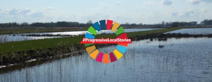 Obviously, climate change is real and to a certain extent imposes 'progress' on towns, cities and regions everywhere. All scientific data and even our own experience tell us that we will experience more extreme weather events and while trying to do everything we can to reduce greenhouse gas emissions, we also have to adapt our own infrastructure to cope with, in our case for instance, many more days of much heavier rainfall than what we were used to. But the question which we had to ask ourselves (not just in Weststellingwerf but all across the country) was: do we just build higher flood defenses, or can we do other, more intelligent things. This is why we have opted for an integrated project where we created new storage ponds for excess rain water including a hydro-plant facility to clean it, and combining this with creating additional natural overflow areas. This approach does not just solve the immediate problem what to do with too much water, but has allowed us also to improve biodiversity protection right next to our town center, creating new green recreation areas for the citizens to enjoy, and even integrating it with a historic park from the 19th century. That is what I call a progressive solution!
